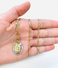 14k Real Gold Filled Virgen De Guadalupe Necklace 20”, Cadena Y Medalla Set Oro