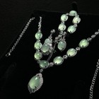 Women's Fashion Elegant Green Flower Pendant Necklace Earring Set Gift Alloy