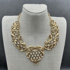 Vintage Barrera For Avon Gold Tone Heart Necklace Earrings Set Rhinestone Womens