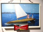 1957 Vtg Budweiser Lighted Beer Sign Pinup Girl Wood Sailboat Boating Sailing