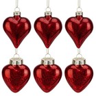 6 Pcs Valentine's Day Heart Glass Ornaments, 2 Style Antique Red 6pcs-mix