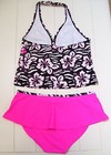 Girls Youth Ocean Pacific 2 Pc Pink Tropical Halter Skirted Bikini Swimsuit 12.5
