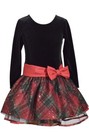 Bonnie Jean Girls Christmas Holiday Santa Plaid Velvet Red Silver Bow Dress