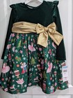Bonnie Jean Girls Christmas Nutcracker Party Holiday Green Velvet Dress 2t - 6x
