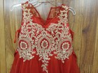 My Best Kid Girl’s Red Holiday Lace Dress Sleeveless Size 16 Gold Detail