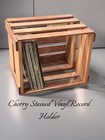 Cherry Stained Wooden Vinyl Record Holder Crate – Handcrafted Lp Storage Box