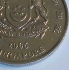 2006 20 Cent Error Lg. Die Chip (r) Ribbon. Singapore Coin. Super Rare.
