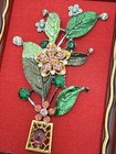 Vintage Jewelry Art House Plant Green Blue Red Gold Tones 7" X 5 1/2"