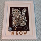 Vintage Jewelry Assemblage Art Mosaic Kitten Cat Mouse Ball Of Yarn 12x15 Ooak