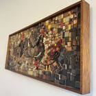 Original M. Wolff “the Chicken Mosaic” Mid Century Ceramic Tile Art 12x30 Framed