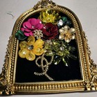 Vtg Style Assemblage Floral Jewelry Art Ornate Goldtone Frame Signed