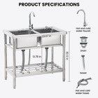 33 Inch Stainless Steel Utility Sink, Free Standing Double Bowl Commercial Sink