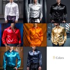 Men's Satin Silk Shirt Long Sleeve Button Down Casual Wedding Party Tops New