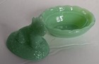 Jadeite Depression Style Glass Hen On Nest Chicken Salt Cellar Dish, Vtg Style