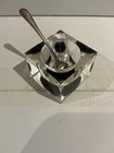 Vintage Mid-century Modern Lucite Cube Salt Cellar With Silverplate Spoon C 1960