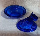 2 Cobalt Blue Depression Style Glass Hen On Nest Chicken Salt Cellar Dish, Bowl