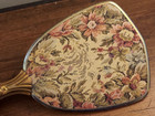 Vintage 3 Piece Dresser Vanity Set Mirror Brush Comb Floral Design Gold Red Tone