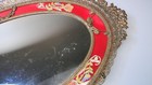 Ornate Vintage Gilt Filigree Lg Tray Vanity Mirror W Fancy Red Applique Insert