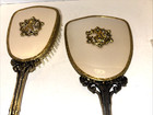 Vintage Victorian Style Vanity Hand Mirror And Brush Set Gold Tone