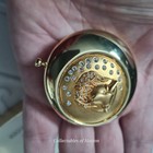 Vintage Volupte Gold-tone Metal Makeup Compact Clutch W/ Gemstone Topper