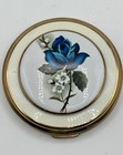 Vintage Mirrored Compact Blue Rose Floral 3" Round