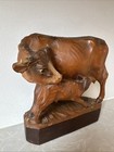 Cow And Calf Wood Hand Hand Carved Vintage Interior Decor Art Sculpture