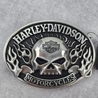 Harley Davidson Motorcycles Skull Head & Flames 2014 Hd Oval Bikers Belt Buckle