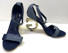 G2u Dolce Gabbana Blue Gold Cloth Dg Logo Heels Denim Shoes Strap Eu38 Us 75