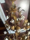 Vintage Italian Metal Gilt Porcelain Roses Chandelier Light W/ Made In Italy Tag