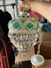 Bohemian White Enamel Glass Cut To Green Hanging Lamp Czech Pendant Chandelier