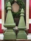 Pair Of Large Handpainted Verdigris Green Distressed Architectural Tin Finials