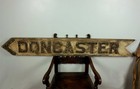 Large Wood Doncaster Direction Sign. Antique Rustic Glass Marble Reflectors