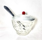 Vintage Crystal Salt/sugar Lidded Small Bowl Jar + Ornate “fleur De Lys” Spoon