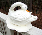 Vintage Ceramic / Swan / Soup Tureen / Feather Ladle / & Underplate / Excellent