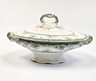 John Maddock Sons Hamilton Green Oval Covered Vegetable Serving Bowl Transferwar