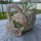 Vtg Fitz & Floyd Ceramic Swan Lily Soup Tureen W/ Feather Ladle Lid 1987 3.5 Qt