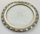 Vintage Sterling Silver Rimmed Glass Champagne / Wine Coaster - Etched Starburst
