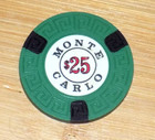 Monte Carlo $25 Casino Chip Reno Nevada Lg-key Mold 70's Era Gaming Collectible