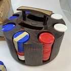 Vintage Walnut Chip Caddy Set Spinner Carousel & Cover With Chips