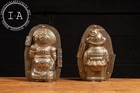 Small Antique Swedish Sweden Mold Pair / Set W Fleur De Lis & Pears - Copper Tin