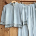 Terry Paris France Women's Dress Skirt Suit Size S 6 Viscose Linen Vintage Mint