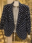 Geometric Black White Circles 3/4 Sleeve Suit Blazer Jacket Women's Medium