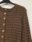 Aya Womens Vintage Cardigan Sweater 14 Beige Animal Print Knit Shoulder Pads