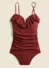 J. Crew Nwot Size 22 Matte Ruched One-piece Swimsuit With Ruffles Sienna Red