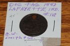 1882 Dog Tag Lafayette Ind. #112 B.w. Smith Co. Brass License – Antique 19th C.*