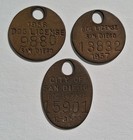 Vtg 1950s San Diego City Dog Tax Brass License Tag Original Lot Of 3 1956, '57