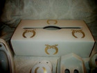 Vintage French White Porcelain Bath Hardware Set 6 Pc Gold Soap Toothbrush Hooks