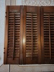 Vintage Plantation Window Shutters Set 34" X 28" Wood Interior Louver Brown Htf