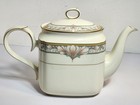 Vintage White Poinsettia Teapot Pastel Green Leaves Silver Gilt Beautiful
