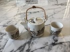 Tea Pot Wicker Handle & Set Of 2 Cups Kitchen Teapot Decor Japan With Gold Trim